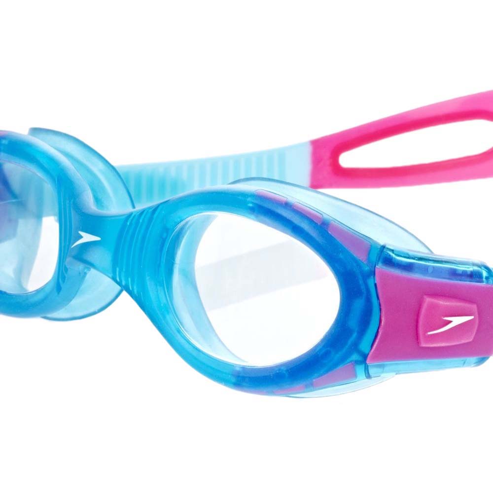 The Speedo Futura Biofuse Junior Brights Turquoise & Pink Goggles are are made from felixble material that stretch and adjust to your facial contours. The SpeedFit strap adjustment system enables a quick and easy adjustment while the split strap is designed to evenly disperse pressure. These goggles are feature Speedos Biofuse Technology and come in a range of bright fun colourways.