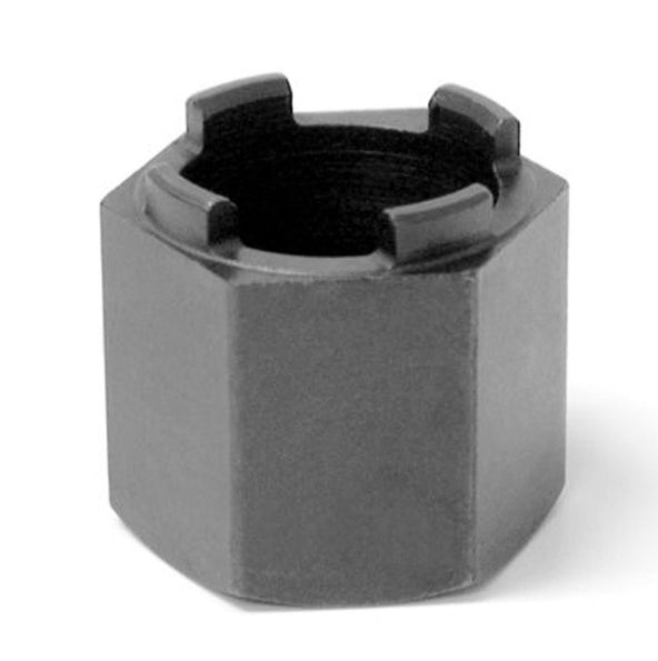 Heat treated alloy tool steel, one inch base fits wrench or bench vise. Thin wall construction allows use without removal of cones and locknuts
