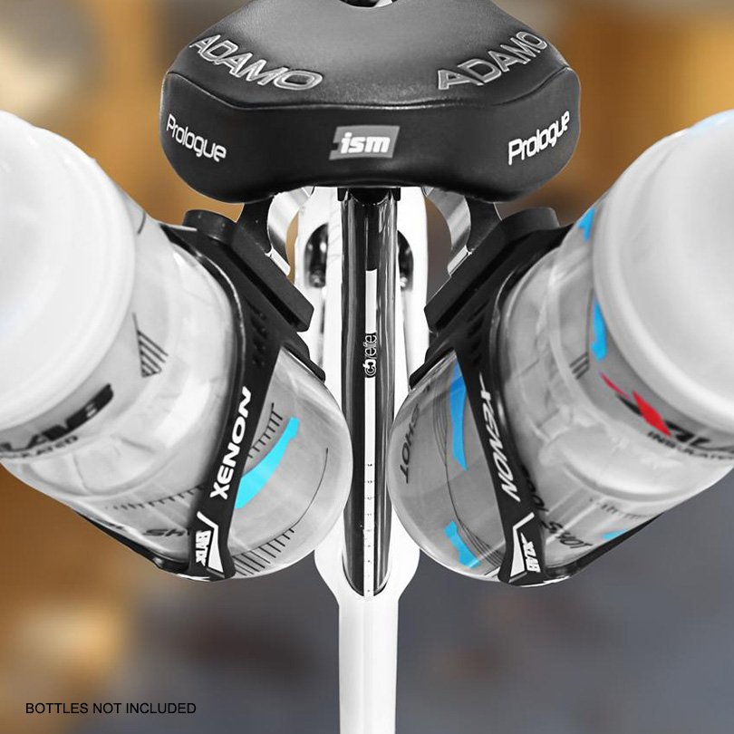 - Dual bottle system tucks neatly behind your saddle for easy access to hydration.